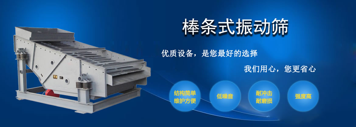 國盛牌棒條式振動篩簡稱棒條篩,采用盲板加棒條形式的給料面,樣式分為:激振器式、振動電機式、吊掛式三種,適用于破碎機前大塊物料的均勻篩分,特別適用于黑色或有色金屬礦石、建筑石料粗碎或中碎前的給料用。