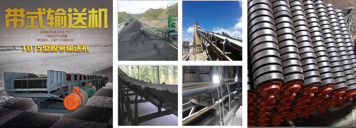 TD75型皮帶輸送機主要由兩個端點滾筒及緊套其上的閉合輸送帶組成。帶動輸送帶轉動的滾筒稱為驅動滾筒(傳動滾筒);另一個僅在于改變輸送帶運動方向的滾筒稱為改向滾筒。驅動滾筒由電動機通過減速器驅動,輸送帶依靠驅動滾筒與輸送帶之間的摩擦力拖動。驅動滾筒一般都裝在卸料端,以增大牽引力,有利于拖動。物料由喂料端喂入,落在轉動的輸送帶上,依靠輸送帶摩擦帶動運送到卸料端卸出。